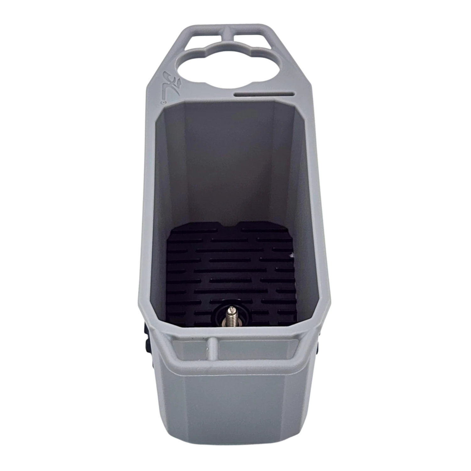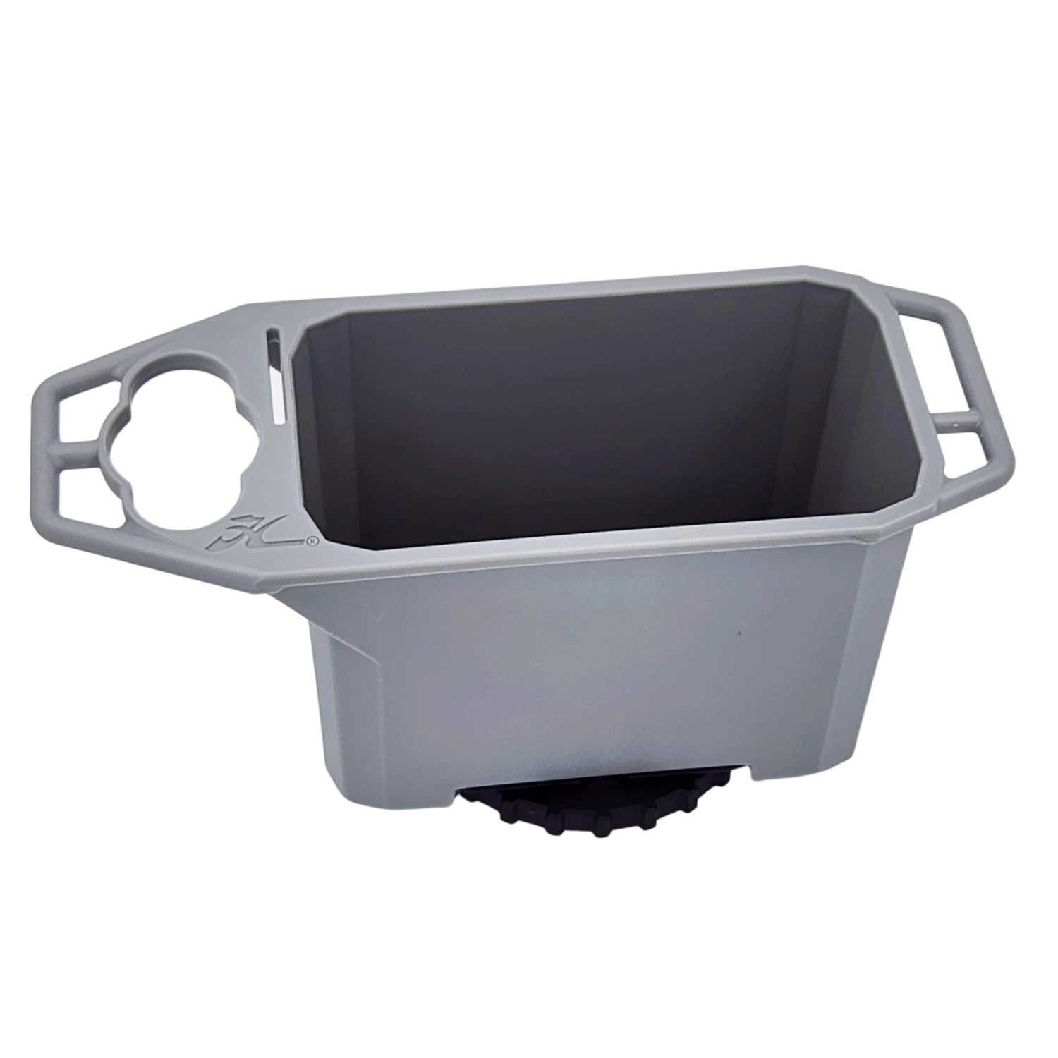Space is always a commodity on a fishing kayak. That’s why we designed the Track Mount Mini Bin. Don’t let the name fool you, this slim bin packs serious utility. The oversized tension wheel and locking tab on the underside of the bin make for a seriously secure installation that resists unthreading. Featuring a molded tool holder, knife slot, braid scissor holder/pad eye, plus three additional pad eyes for leashing gear to – this bin holds it all. A snap-in floor that’s removable makes cleaning easy, and the raised drain channels shed water and prevent pooling. The bin’s internal size is just that to conveniently fit bags of soft plastics, or a variety of canned or bottled drinks.