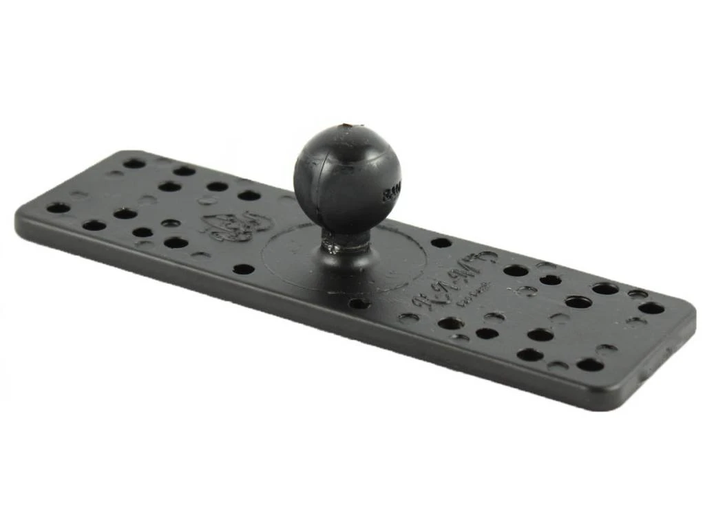 The RAM-B-111BU consists 1″ diameter rubber ball connected to a flat 6.25″ x 2″ rectangle base. The base contains different combinations of pre-drilled holes which will match up to many electronic devices and mounts, including Marine GPS, CB Radios, Ham Radios, Gimbal Brackets and more.